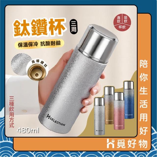 Ho覓好物三用魚鱗鈦鑽杯 直飲吸飲 304不鏽鋼 316不鏽鋼 480ml【SGS認證】保溫杯 隨手杯 HM203