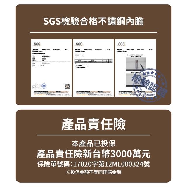 - 內膽304不鏽鋼+鍍鈦塗層