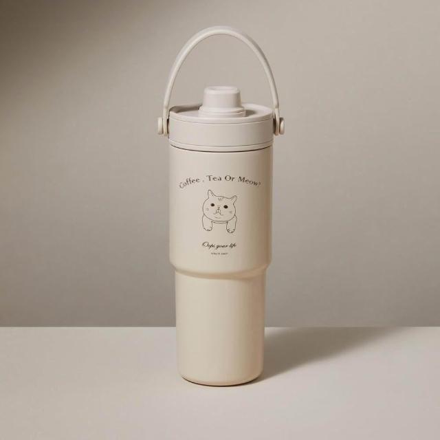 Oops your life 胖虎貓咪珍珠奶茶吸管杯 手提冰霸杯 保溫杯 隨行杯