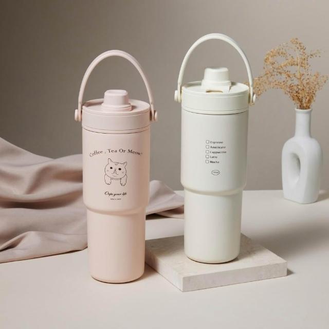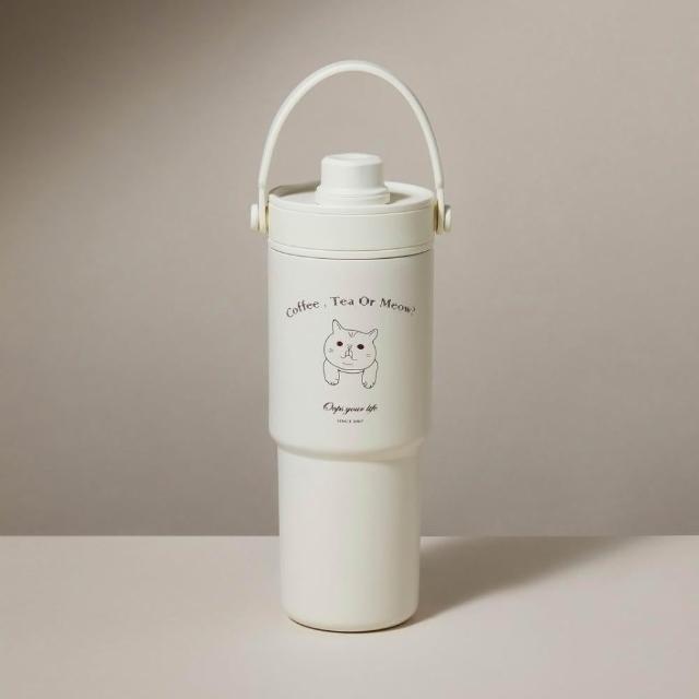 Oops your life 胖虎貓咪珍珠奶茶吸管杯 手提冰霸杯 保溫杯 隨行杯