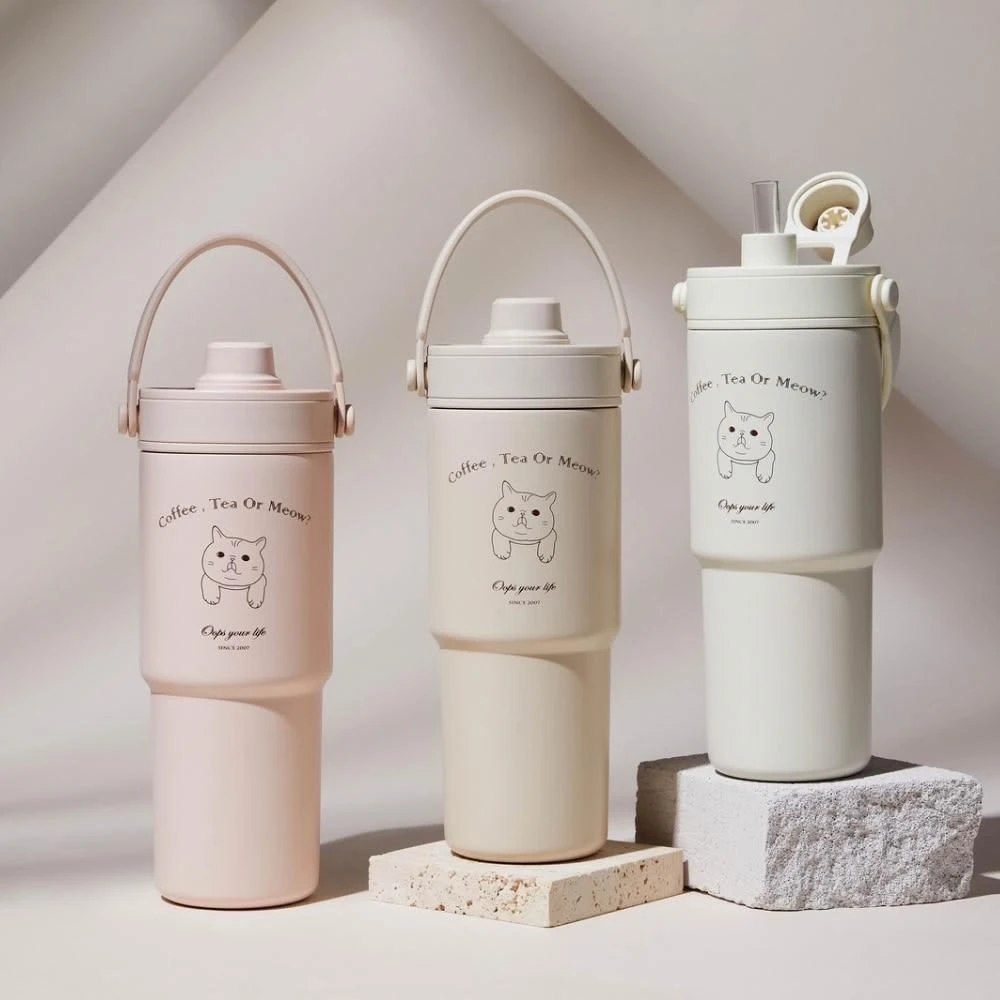 Oops your life 胖虎貓咪珍珠奶茶吸管杯 手提冰霸杯 保溫杯 隨行杯