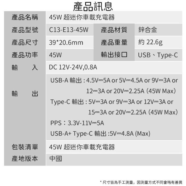 45W TYPE-C 1A1C PD 隱型車充 迷你車充 車用充電器 車充 車用快充 小米車充 iphone車充