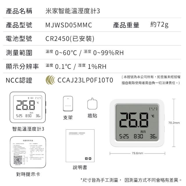 小米米家智能溫濕度計三代 APP同步 LDE螢幕 時鐘 日期 時間 溫濕度 濕度 溫度計 溼度