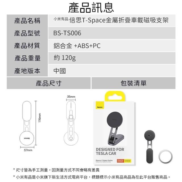 小米有品 適用特斯拉 TSPACE 金屬 摺疊 車載 磁吸 支架 隱藏式 伸縮 懸浮式 360度旋轉 手機支架