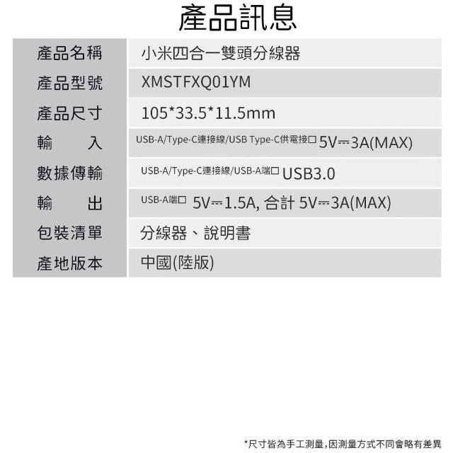 小米四合一雙頭分線器 擴展塢 雙頭 USB Type-C 分線器 雙接頭 HUB 四孔 四口 集線器 小米 米家