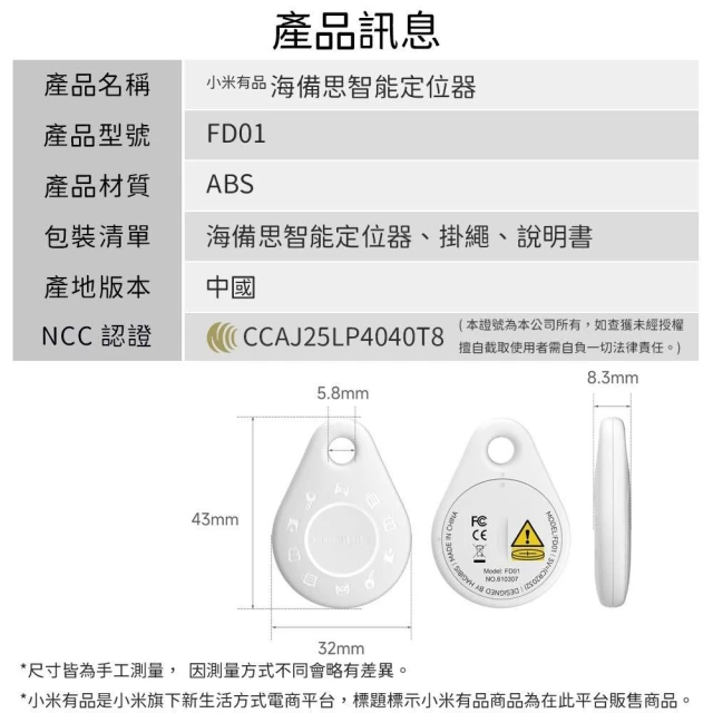 小米有品 AirTag 蘋果認證 全球 定位器 防丟器 追蹤器 適用 寵物 鑰匙 車輛 車位 兒童 老人 包包 旅行箱