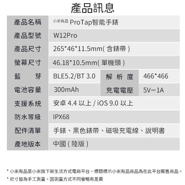 小米有品 ProTap 智能手錶 W12PRO 防水手錶 智慧型手錶 運動手錶 藍牙通話 心率 睡眠監測