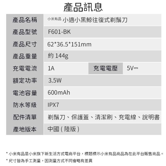 小米有品 小適 小黑鯨 往復式剃鬚刀 便攜 剃鬚刀 刮鬍刀 充電式 往復刀頭 剃鬍 水洗 電動刮鬍刀