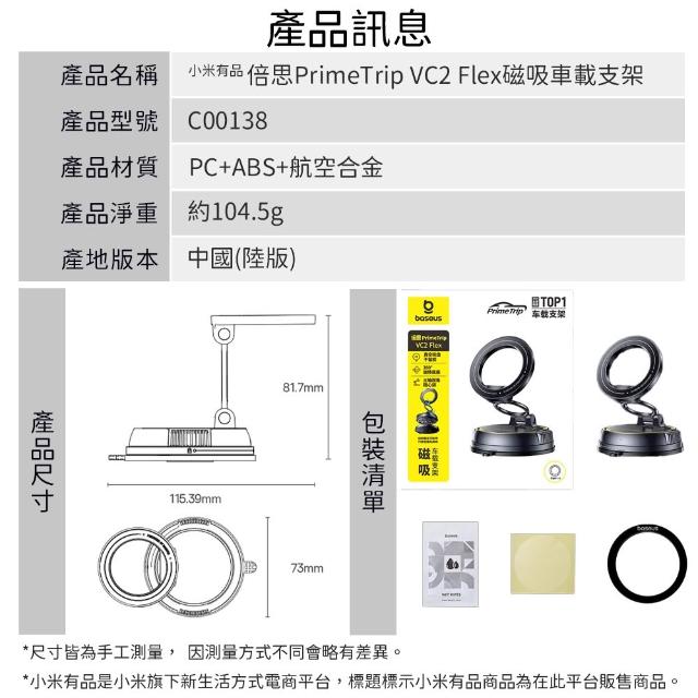 小米有品 磁吸車載支架 VC2 Flex 手動 三軸輕薄 360°旋轉 車載支架 磁吸支架 吸附支架 吸盤 手機架