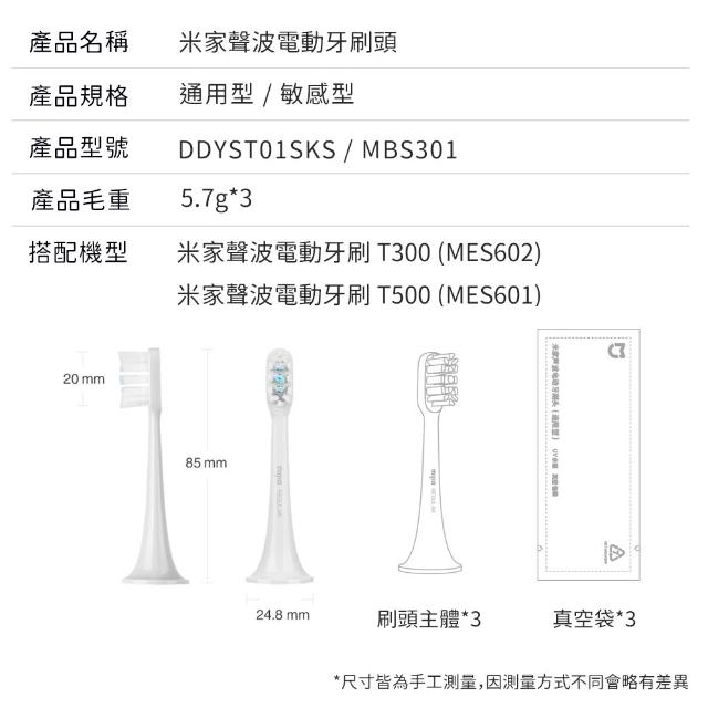 T300 T500 電動牙刷刷頭 通用型 敏感型 牙刷頭 耗材 配件 (3支裝) 小米 米家
