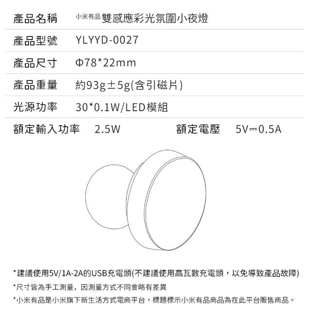 小米有品 雙感應彩光氛圍小夜燈 智能感應小夜燈 感應 夜燈 小夜燈 燈 人體 小燈 睡眠燈 感應燈 磁吸燈 免插電