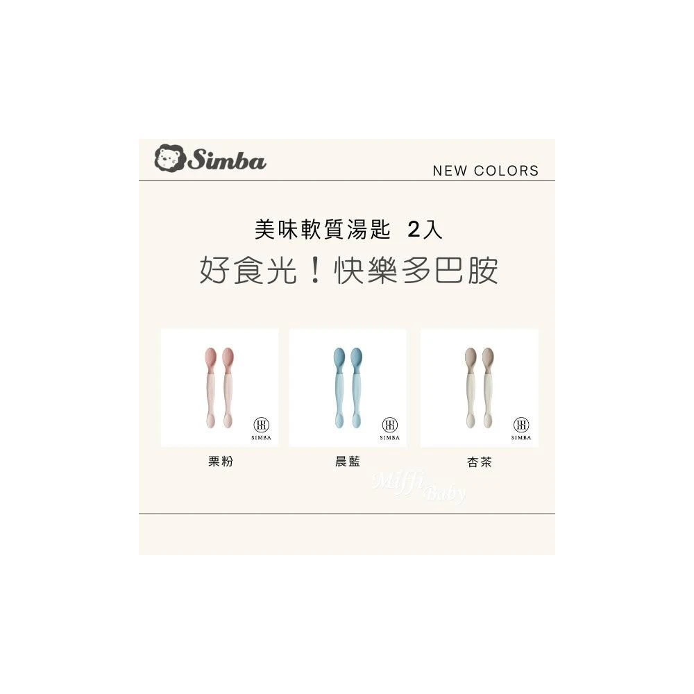 Simba 小獅王辛巴Simba小獅王 新色上市 美味軟質湯匙2入(杏茶/晨藍/栗粉) 軟質湯匙 副食品湯匙 餵食湯匙-miffybaby