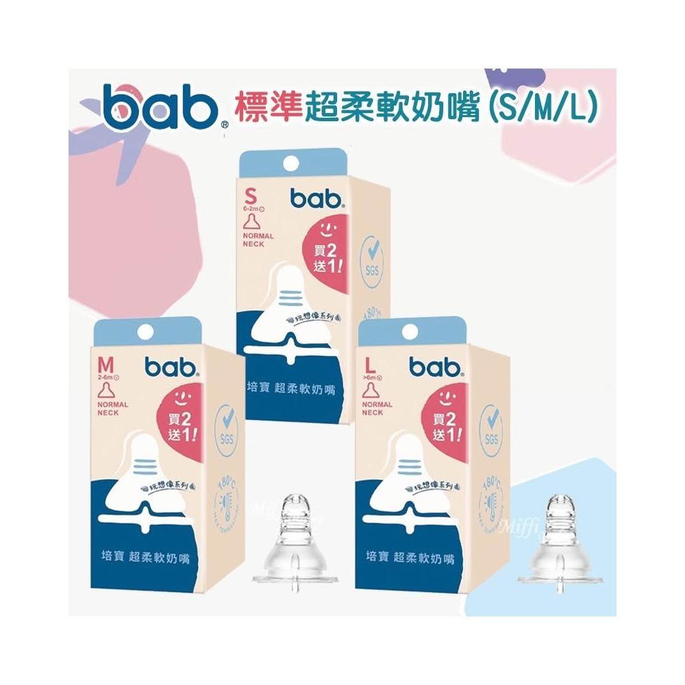 bab 培寶bab培寶 超柔軟標準奶嘴3入/盒(S/M/L) 公司貨 標準口徑 一般口徑 替換奶嘴-miffybaby