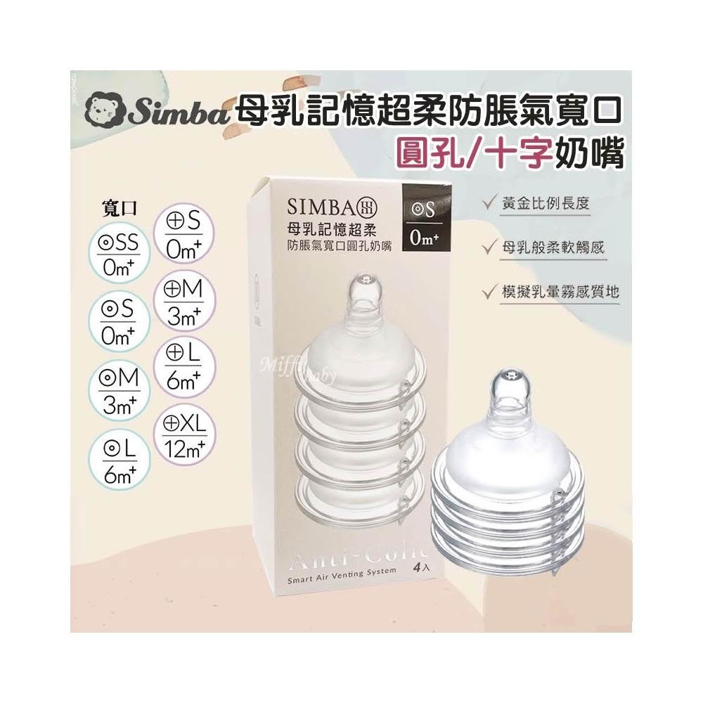 Simba 小獅王辛巴全新包裝 小獅王Simba 母乳記憶超柔防脹氣奶嘴(寬口)十字/圓形-MiffyBaby