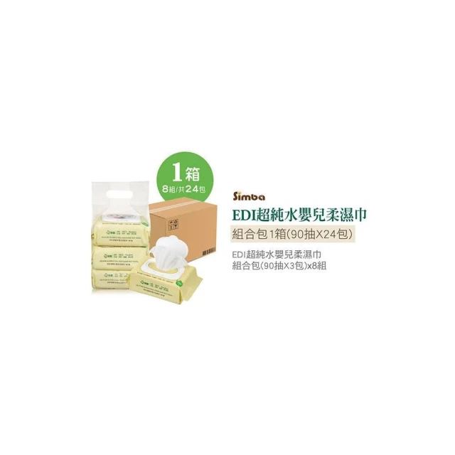 Simba 小獅王辛巴EDI超純水嬰兒柔濕巾90抽*24包/箱(加厚連抽型/保濕配方)-MiffyBaby