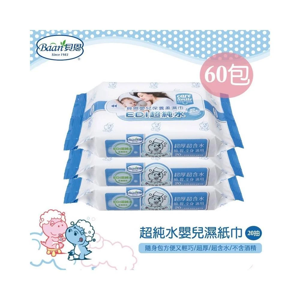 Baan 貝恩嬰兒保養柔濕巾20抽x60包(臉口鼻適用;柔濕巾/濕紙巾)-MiffyBaby
