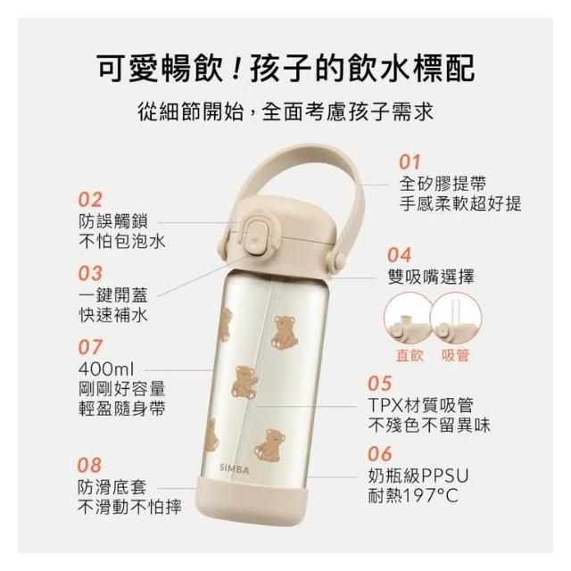 Simba 小獅王辛巴鉑金PPSU兒童水壺400ml (直飲/吸管) 適用2-8歲 幼稚園水壺 順順水壺-miffybaby