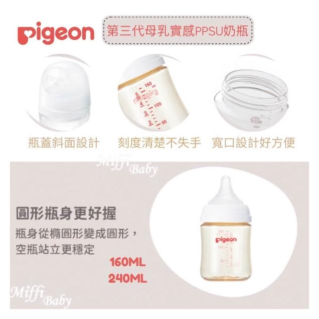 Pigeon貝親第三代母乳實感PPSU奶瓶160ml 240ml 純淨白 -miffybaby