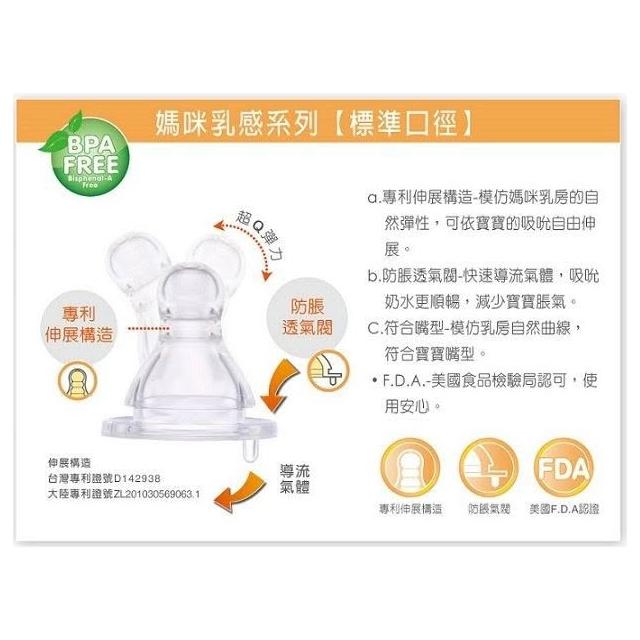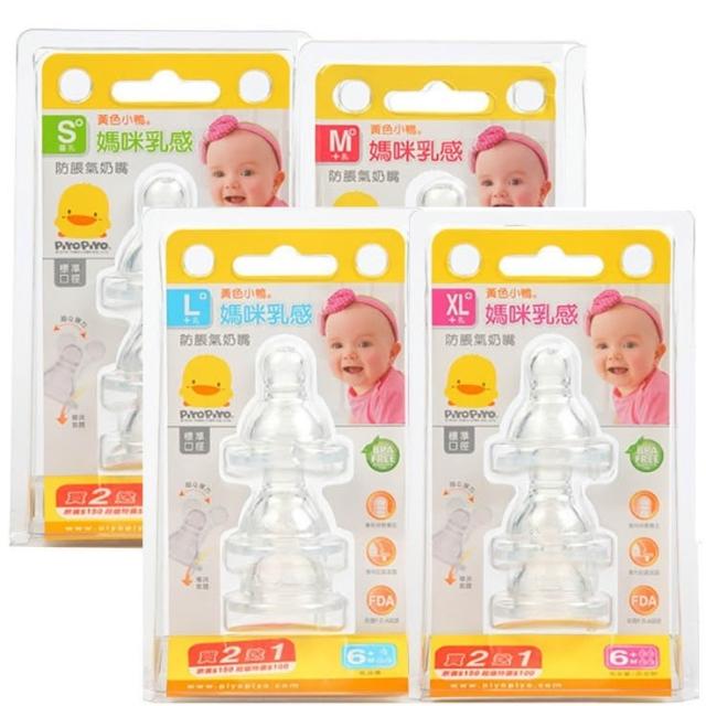 Piyo Piyo 黃色小鴨媽咪乳感標準口徑(非寬口)防脹氣奶嘴3入裝 - S / M / L / XL -miffybaby