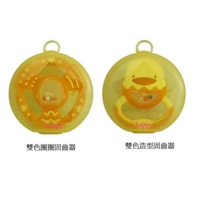 Piyo Piyo 黃色小鴨保潔盒雙色造型固齒器/保潔盒雙色圈圈固齒器 台灣製-miffybaby