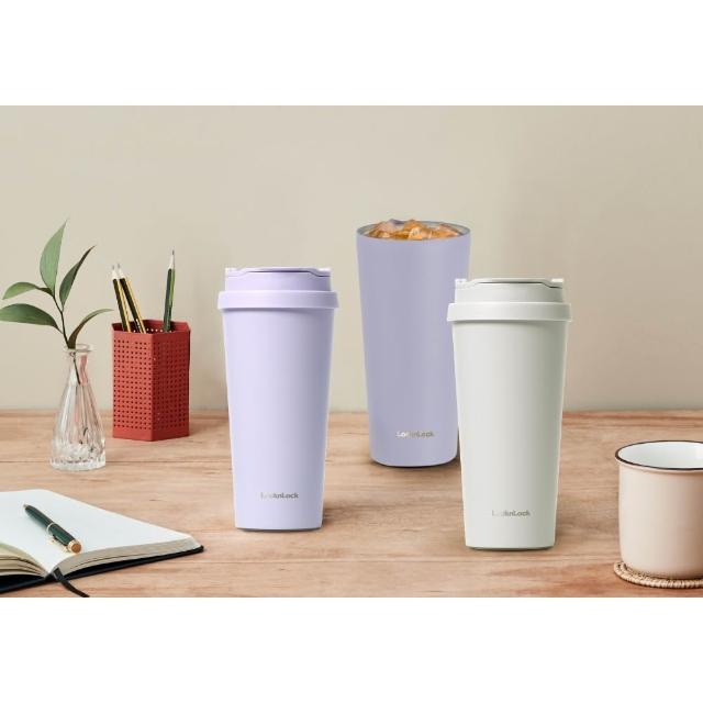 LocknLock 樂扣樂扣溫感手提咖啡杯540ml (霧白/霧紫) -miffybaby