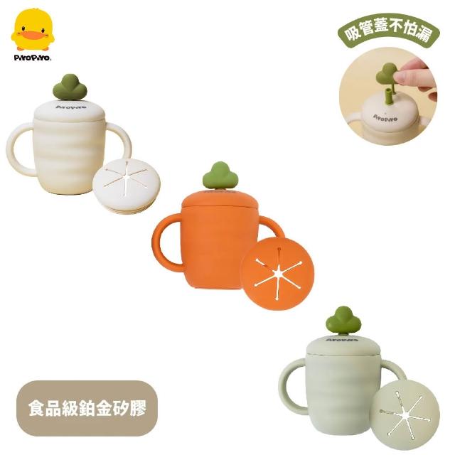 Piyo Piyo 黃色小鴨鉑金矽膠嬰兒零食吸管兩用蘿蔔杯-miffybaby