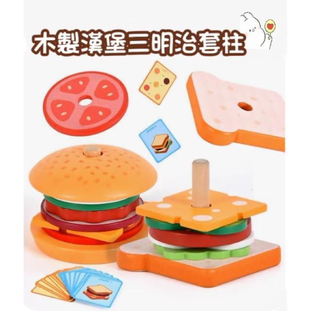 🌟全館現貨❤️愛卡樂賣場❤️三明治漢堡疊疊樂玩具 過家家 切切樂 家家酒玩具 木製套柱 益智玩具(木製玩具)