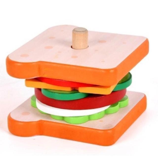 🌟全館現貨❤️愛卡樂賣場❤️三明治漢堡疊疊樂玩具 過家家 切切樂 家家酒玩具 木製套柱 益智玩具(木製玩具)