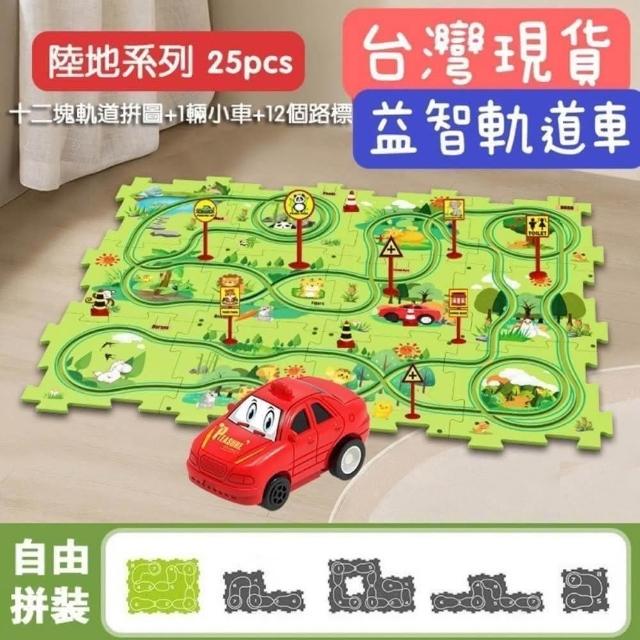 🌟全館現貨❤️愛卡樂賣場❤️兒童益智軌道車 25PCS 賣場 小汽車DIY拼圖場景玩具 軌道 百變軌道車 電動軌道