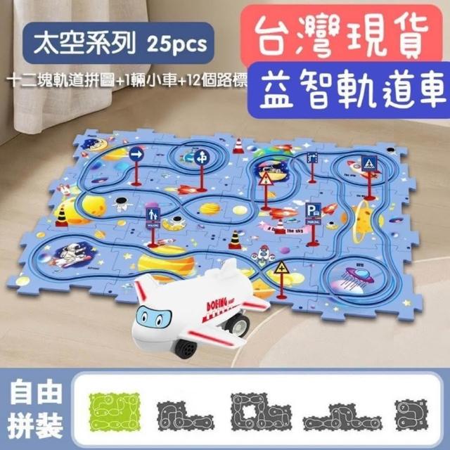 🌟全館現貨❤️愛卡樂賣場❤️兒童益智軌道車 25PCS 賣場 小汽車DIY拼圖場景玩具 軌道 百變軌道車 電動軌道