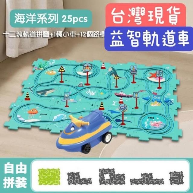 🌟全館現貨❤️愛卡樂賣場❤️兒童益智軌道車 25PCS 賣場 小汽車DIY拼圖場景玩具 軌道 百變軌道車 電動軌道