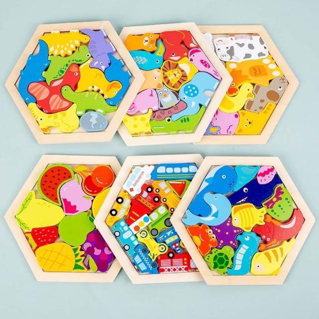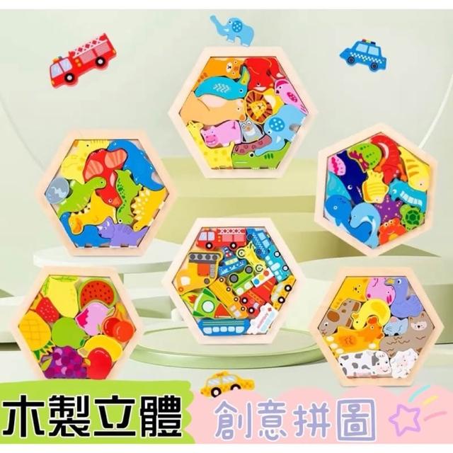 ❤️愛卡樂賣場❤️❤️六邊形立體拼圖 創意拼圖 木製拼圖 智力開發 早教啟蒙 拼圖(拼圖)