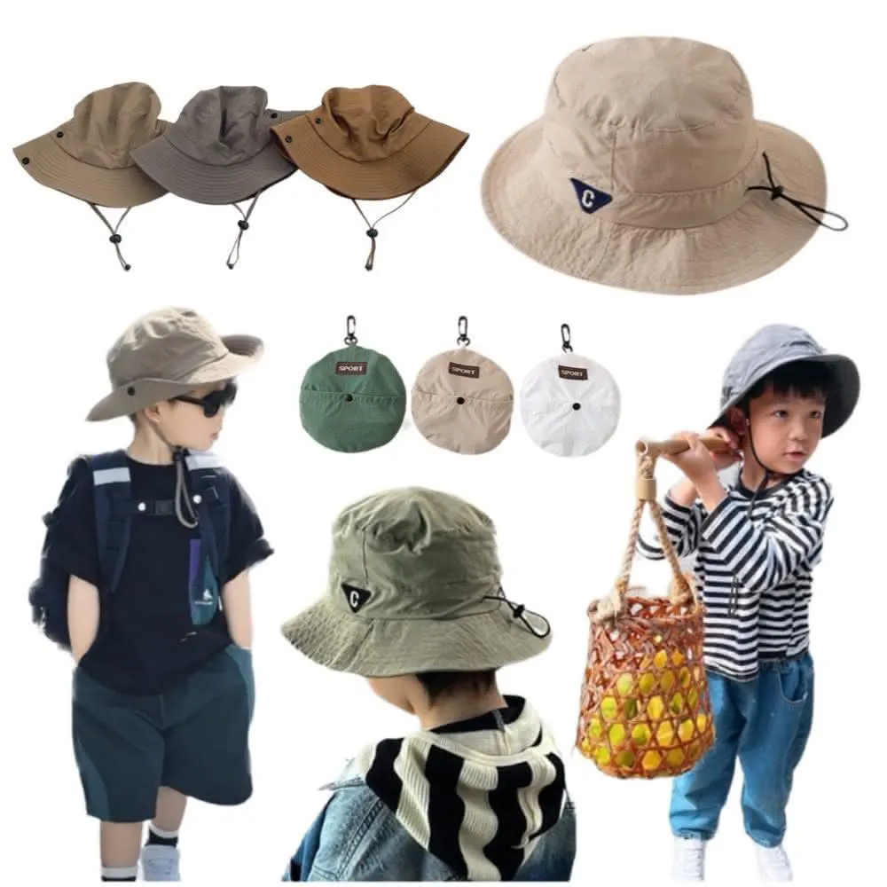 🌟全館現貨❤️愛卡樂賣場❤️🌟 兒童漁夫帽 防曬帽 兒童遮陽帽 大帽簷