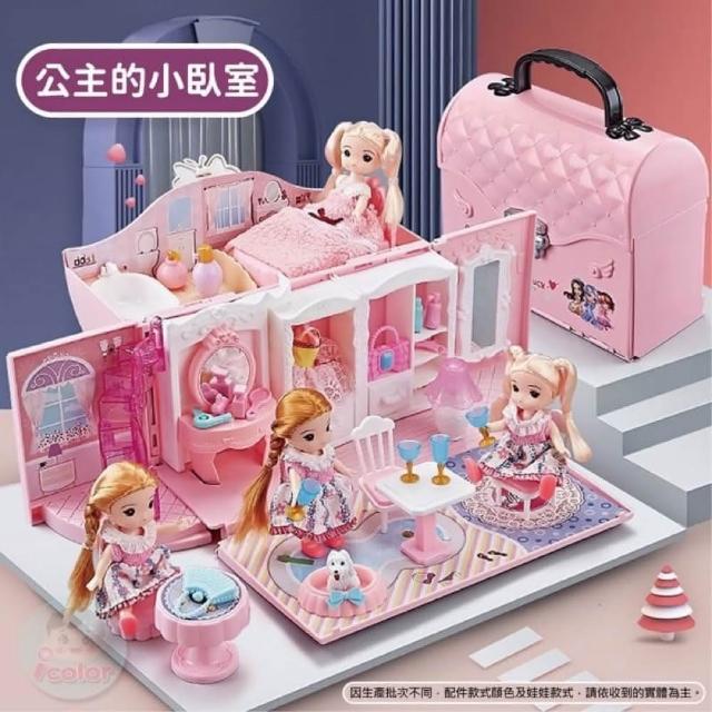 🌟全館現貨❤️愛卡樂賣場❤公主娃娃屋-手提臥室款 送兩隻娃娃 公主城堡屋 手提包娃娃屋 公主別墅城堡 生日禮物 過家家