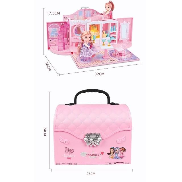 🌟全館現貨❤️愛卡樂賣場❤公主娃娃屋-手提臥室款 送兩隻娃娃 公主城堡屋 手提包娃娃屋 公主別墅城堡 生日禮物 過家家