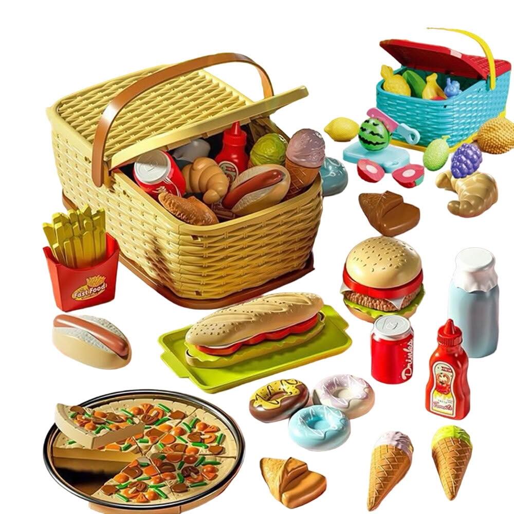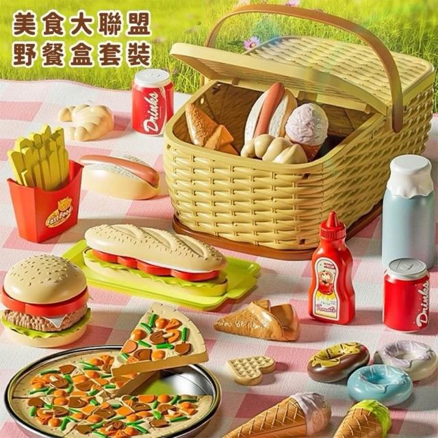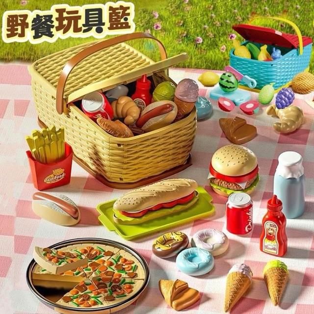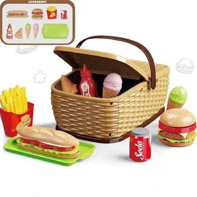 ❤️愛卡樂賣場❤️ 仿真手提野餐過家家 戶外野餐過家家酒玩具 漢堡披薩 家家酒玩具