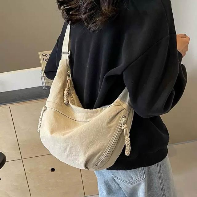 🌟全館現貨❤️愛卡樂賣場❤️日系牛角包 斜背包 單肩包 側背包 帆布包 半月包 餃子包