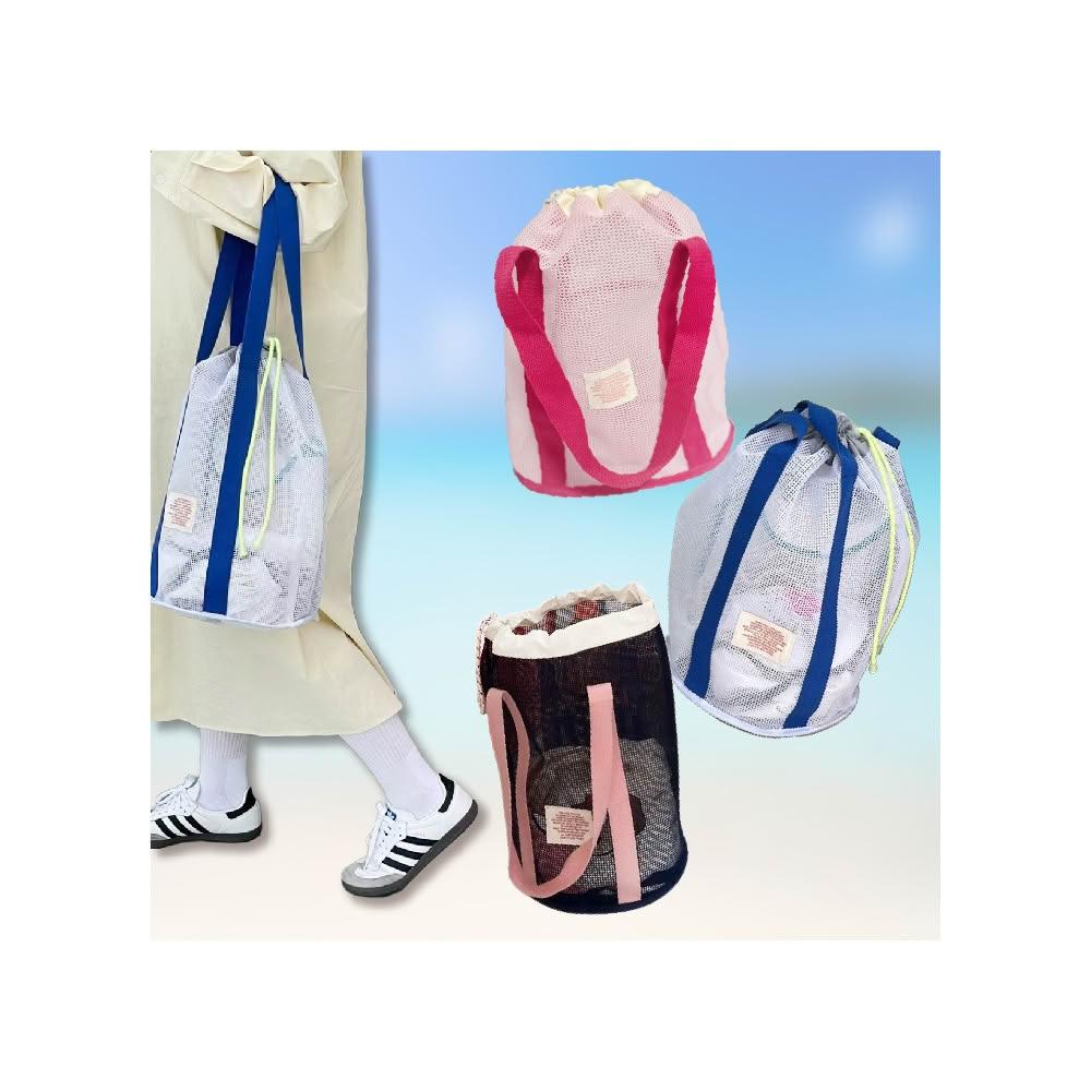 放了媽媽束口袋-網袋-沙灘包-網紗袋-網袋收納包-網格收納包-網格收納包(四色可選)