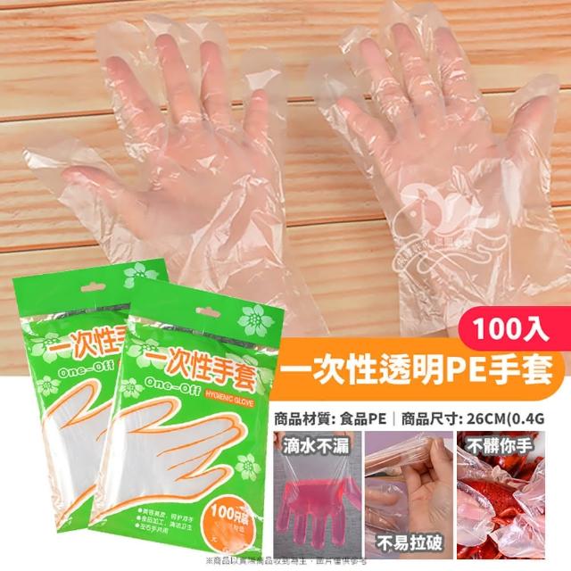 一次性透明PE手套100入 一次性手套 透明手套 拋棄式手套 塑膠手套 手扒雞手套 PE手套 衛生手套