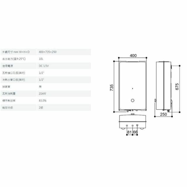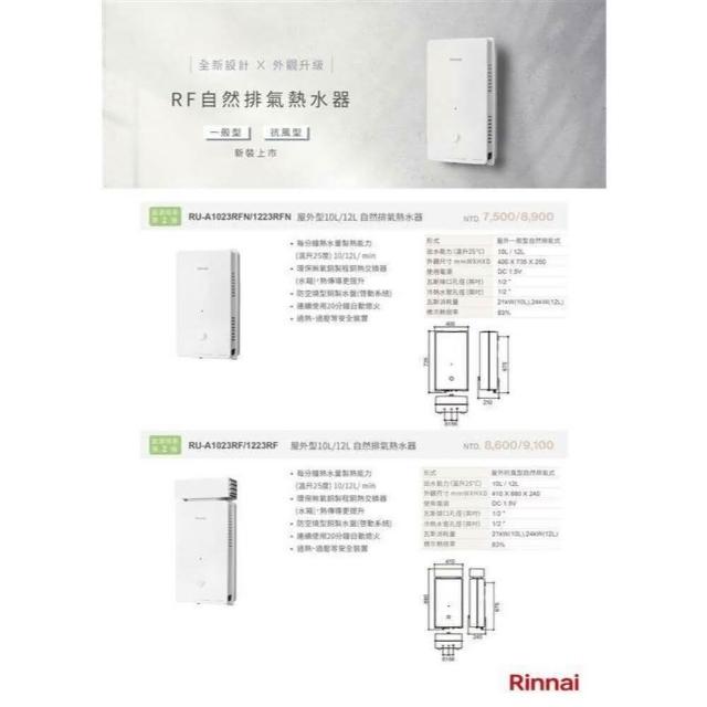 林內RU-A1023RFN 屋外型 10L 自然排氣熱水器 全省免運 限定區域含基本安裝