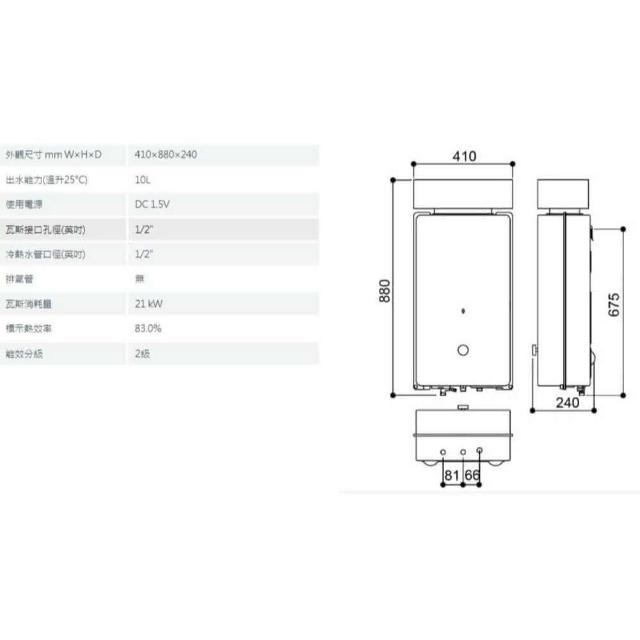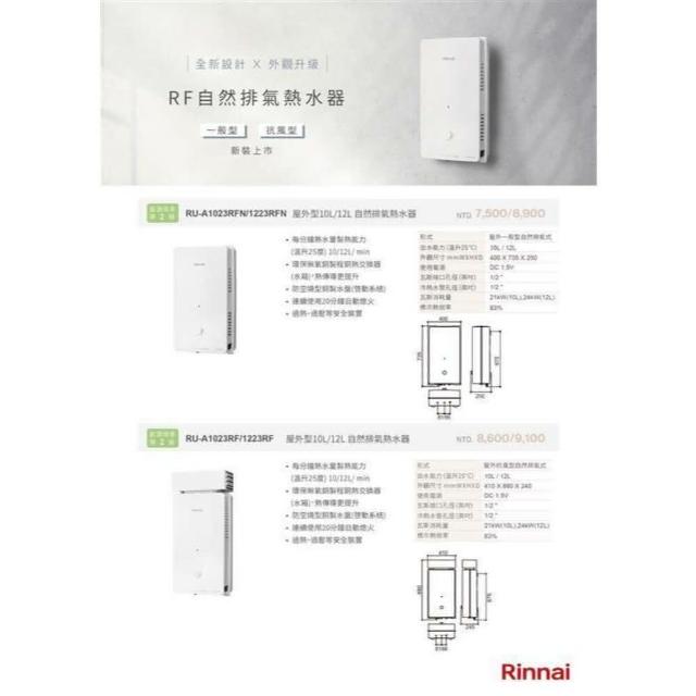 林內RU-A1023RF 屋外型 10L 自然排氣熱水器 加強抗風 限定區域含基本安裝