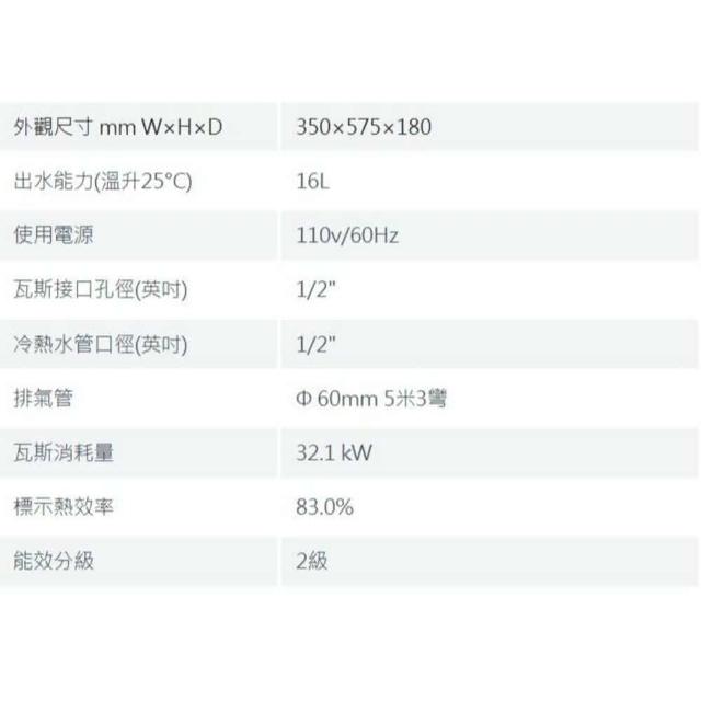 林內RUA-UC1628WF UFB 屋內型 16L 強制排氣熱水器 限定區域含基本安裝