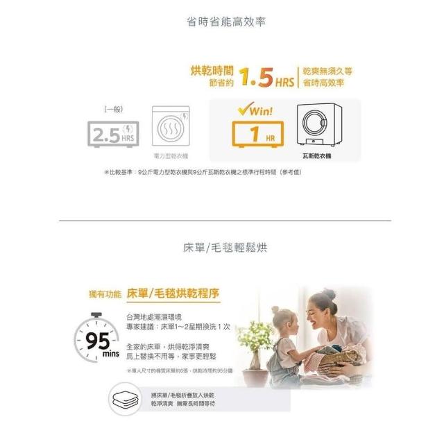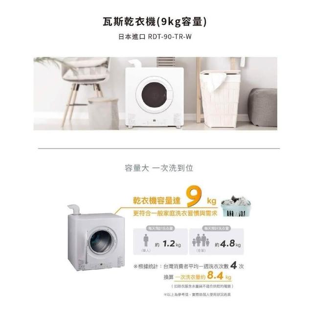林內RDT-90-TR-W 9公斤 日本原裝進口瓦斯乾衣機 烘乾機 全省免運