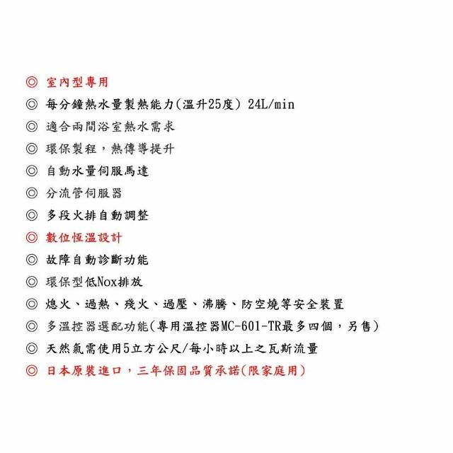 林內日本原裝進口 REU-A2426WF-TR 屋內型 24L 強制排氣熱水器 全省免運 限定區域送基本安裝