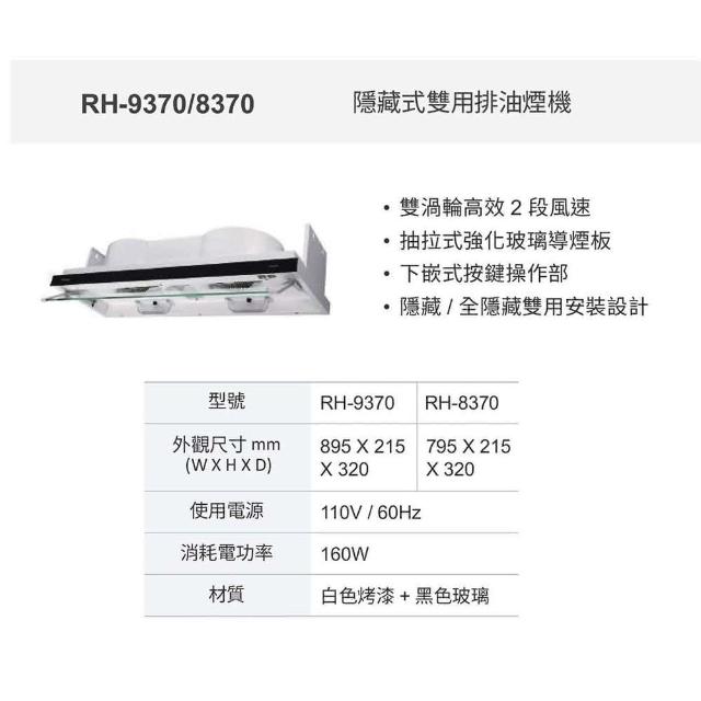 林內RH-9370 90cm 隱藏 全隱藏 雙用安裝排油煙機 全省免運 限定區域送基本安裝