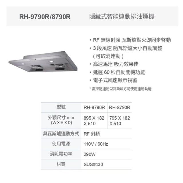 林內RH-9790R 90公分 智能連動 隱藏式排油煙機 全省免運 限定區域送基本安裝