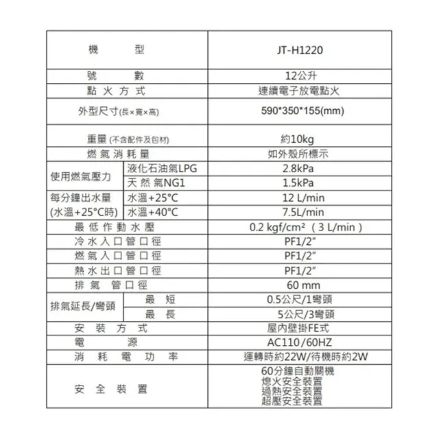 喜特麗JT-H1220 強制排氣數位控溫型熱水器 全省免運 限定區域送基本安裝