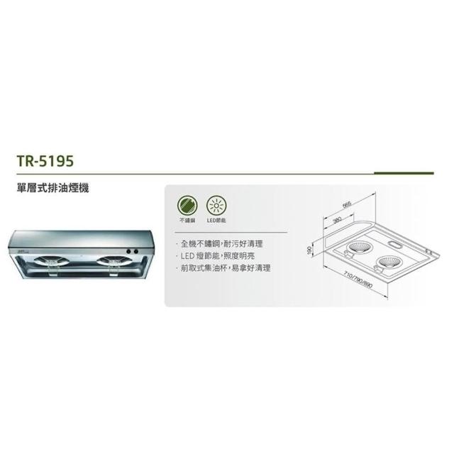 莊頭北TR-5195S 90公分 不鏽鋼 單層式排油煙機 抽油煙機 不含安裝