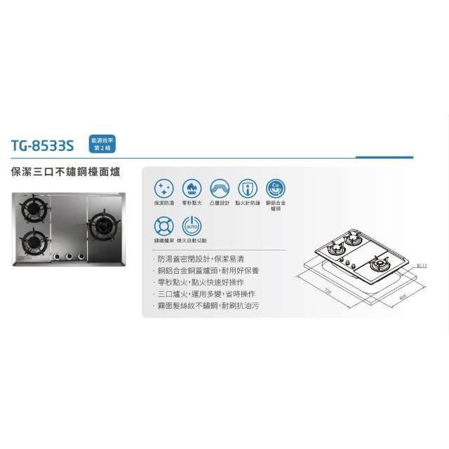 莊頭北TG-8533S 保潔三口不鏽鋼檯面爐 瓦斯爐 限定區域送基本安裝