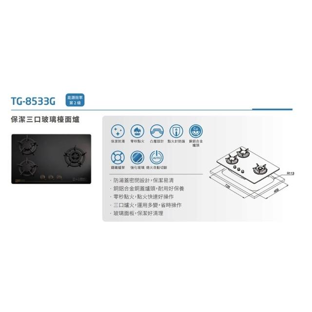 莊頭北TG-8533G 保潔三口玻璃檯面爐 瓦斯爐 限定區域送基本安裝